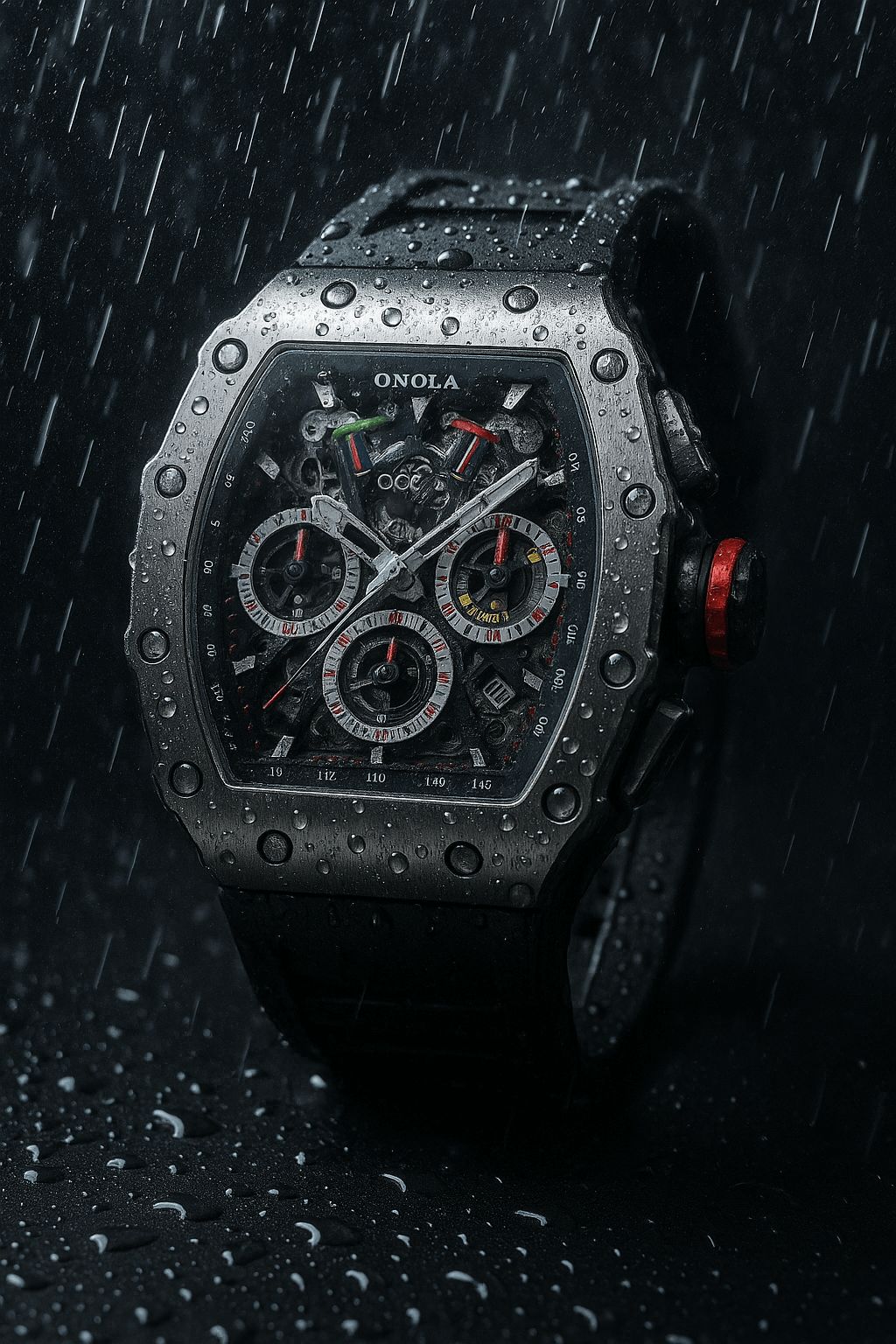 Com resistência à água de 3 ATM, a coleção SCUDERIA suporta respingos e uso diário, garantindo performance e durabilidade sem perder o estilo — preparado para qualquer desafio do seu dia a dia. Evite exposição a vapores intensos para preservar a integridade do relógio.